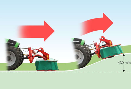 - Для обеспечения оптимальной схемы движения, косилка перемещается независимо от передней системы тяг.