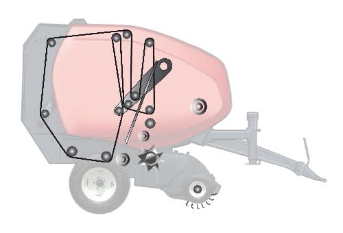 - По мере увеличения диаметра рулона, на рычаге натяжения ремня неуклонно растет сопротивление, передаваемое от двух гидравлических цилиндров и пружинного натяжителя. Таким образом, с увеличением диаметра рулона, увеличивается и его плотность. Результатом является очень плотный рулон с умеренно плотной сердцевиной.