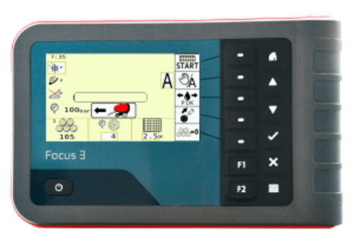 - Терминал Focus 3 позволяет полностью управлять всеми функциями из кабины трактора. Они отображаются на большом и четком цифровом дисплее.